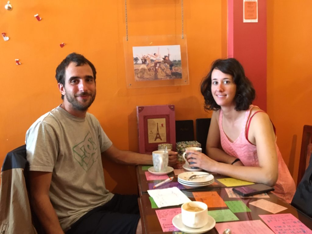 Gabby whom we had met in Dong Ha had recommended that we go to Banh Mi Phap, a French boulangerie in Hue. On one of my stops at Banh Mi Phap, I reconnected with Yuan and Clemente, a French couple I had met at my first breakfast in Hanoi at our B and B Hanoi Hotel. He is Basque and she is from a nearby area in France. They were on their way to Australia and New Zealand to workโhe most likely doing farm labor in Australia and she as a physiotherapist with a secure job in New Zealand. Yuan did not have legal standing to work in New Zealand so they would see each other as much as they could.